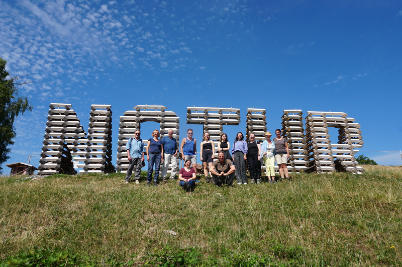 Nach einem Picknick mit Brot und Quiche vom Vorderbühlhof rundeten Kurzreferate der Studentinnen von Prof. Dr. Jens Hauser zu Naturdarstellungen in der Kunstgeschichte den Ausflug historisch ab. Die Beiträge widmeten sich dem Aufkommen der Landschaftsmalerei ab dem 16. Jahrhundert, Cezannes malerischen Impressionen des Mont St. Victoire, einer Photoserie zu Telekommunikationsmasten in den USA von Robert Voit, die u.a. skulptural als Palmen stilisiert werden, bis hin zu einer Großskulptur aus einem Mammutbaum, die der Bildhauer Karl Manfred Rennertz 2019 in Baden-Baden geschaffen hat.