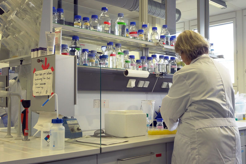 Julia Ihls nahm die Proben schließlich mit an die HfG Karlsruhe. Dort leitet sie das Bio Design Lab, wo sie nun die Proben auf LB-Agar-Platten anziehen konnte. Innerhalb weniger Tage begannen sich auf dem Nährmedium von den Spänestückchen ausgehend je nach Holzart verschiedene Pilze auszubreiten. Da das äußere Erscheinungsbild für eine Bestimmung, welcher Pilz sich genau nun in dem jeweiligen Holz angesiedelt hat, nicht ausreicht, wechselten die Proben noch einmal das Labor zu Prof. Peter Nick am Joseph Gottlieb Kölreuter Institut für Pflanzenwissenschaften (JKIP) am KIT.* In dessen Labor für Molekulare Zellbiologie bereitete Dr. Gabriele Jürges die Proben in einem zweitägigen Prozess aufwendig für die Sequenzierung auf (Minute 4:35 ff): Hierfür wurden die Zellen aufgeschlossen und die DNA isoliert. Im Anschluss wurde ein bestimmter Abschnitt der ribosomalen Erbinformation, der für Pilze charakteristisch ist, über Primer (ITS4 & 5) markiert und mittels der Polymerase-Kettenreaktion (PCR) vervielfältigt. Nach einer weiteren Aufreinigung gingen diese DNA-Proben schließlich an eine Fremdfirma zur Sequenzierung.